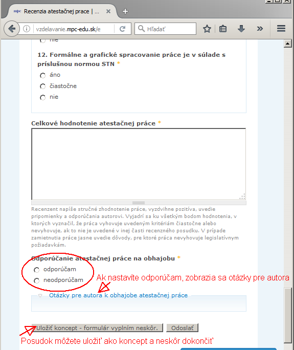 4. Odoslať posudok, alebo ho uložiť ako kocept.